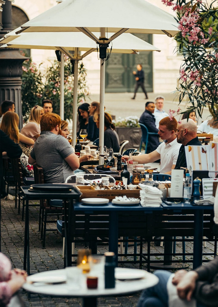 Das Rocca Riviera ist ein Ort für stilvolle Abende und besondere Begegnungen. Azurblaue Polster, Samtstoffe, warme Holztöne und goldene Akzente prägen das Interieur und schaffen eine Atmosphäre zwischen Riviera-Glamour und zeitloser Eleganz. Großzügige Räume, eine markante Bar aus Onyx-Marmor und sorgfältig gesetztes Licht verleihen dem Haus Tiefe und Ruhe zugleich.