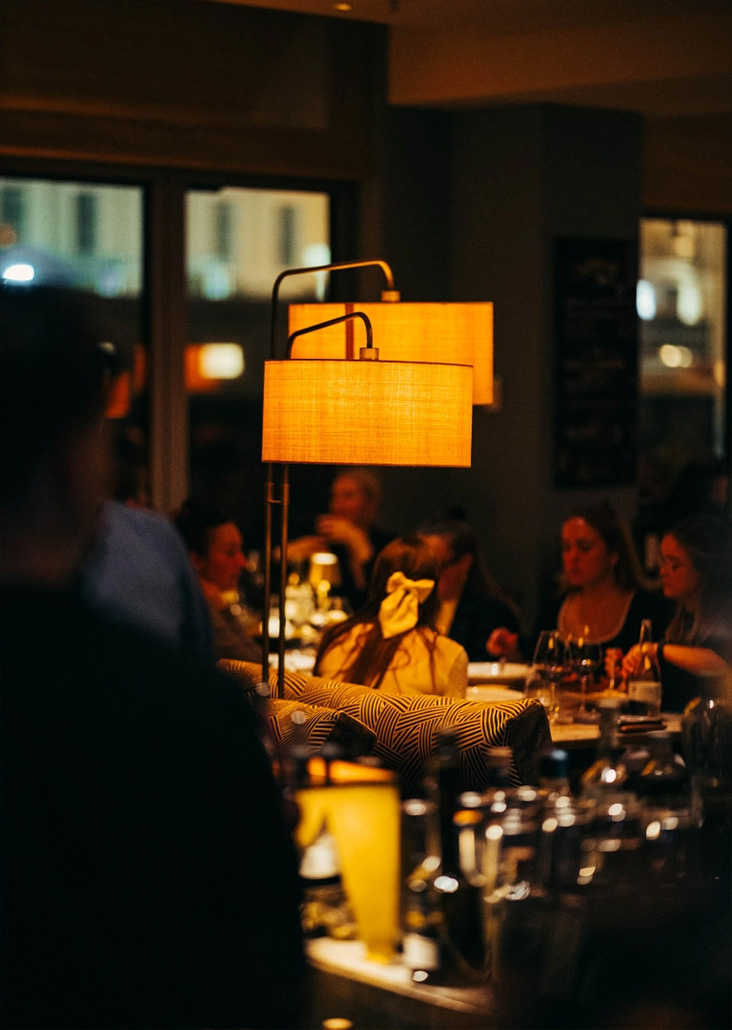 Neben dem lebendigen Erdgeschoss bietet die Bel Étage im ersten Stock eine intimere Stimmung mit dunkleren Materialien und Blick auf das Geschehen darunter. Unterschiedliche Ebenen, Stoffe und Lichtstimmungen greifen harmonisch ineinander und machen das Rocca Riviera zu einem Ort, der sich mit dem Abend verändert.
